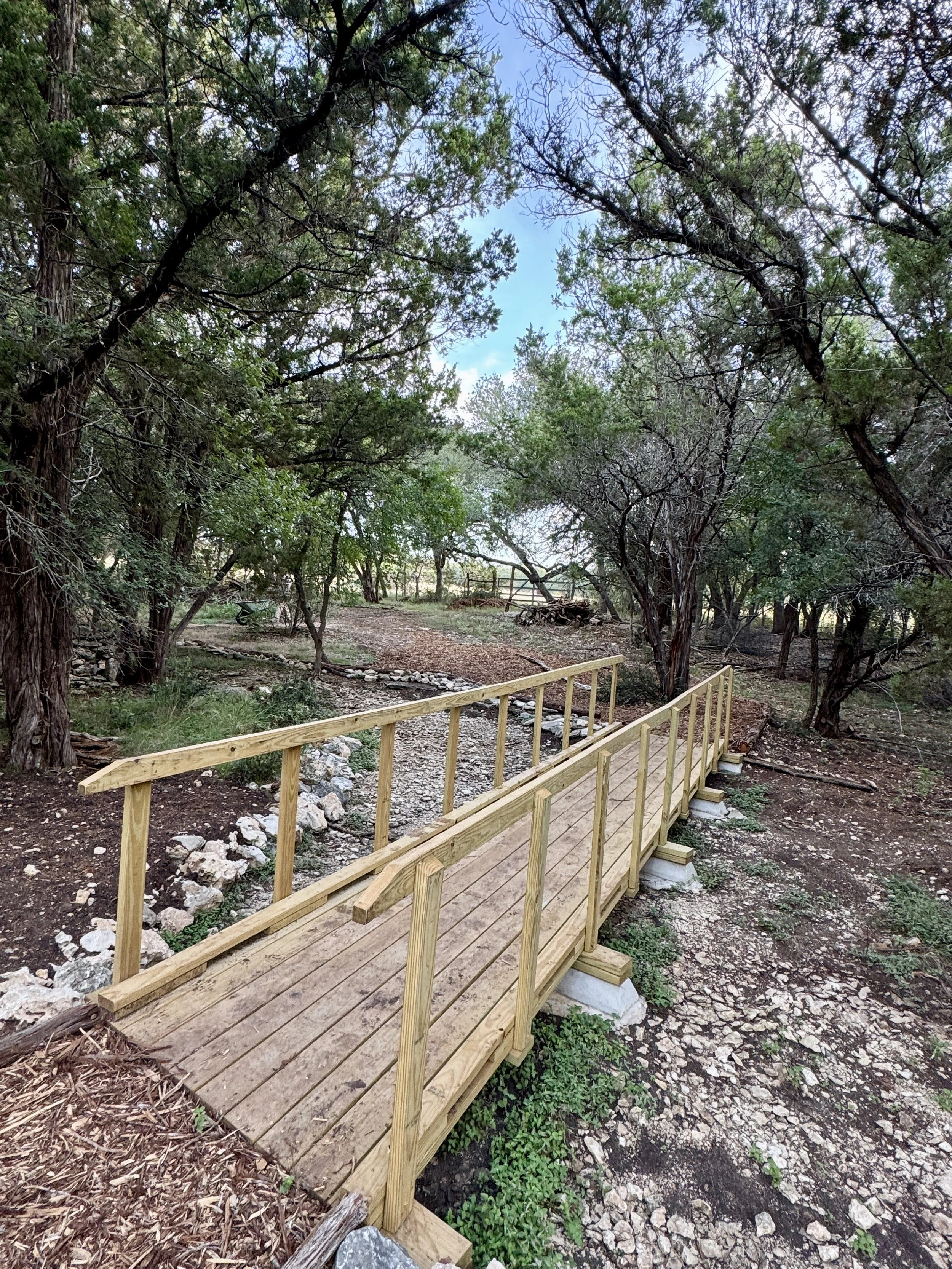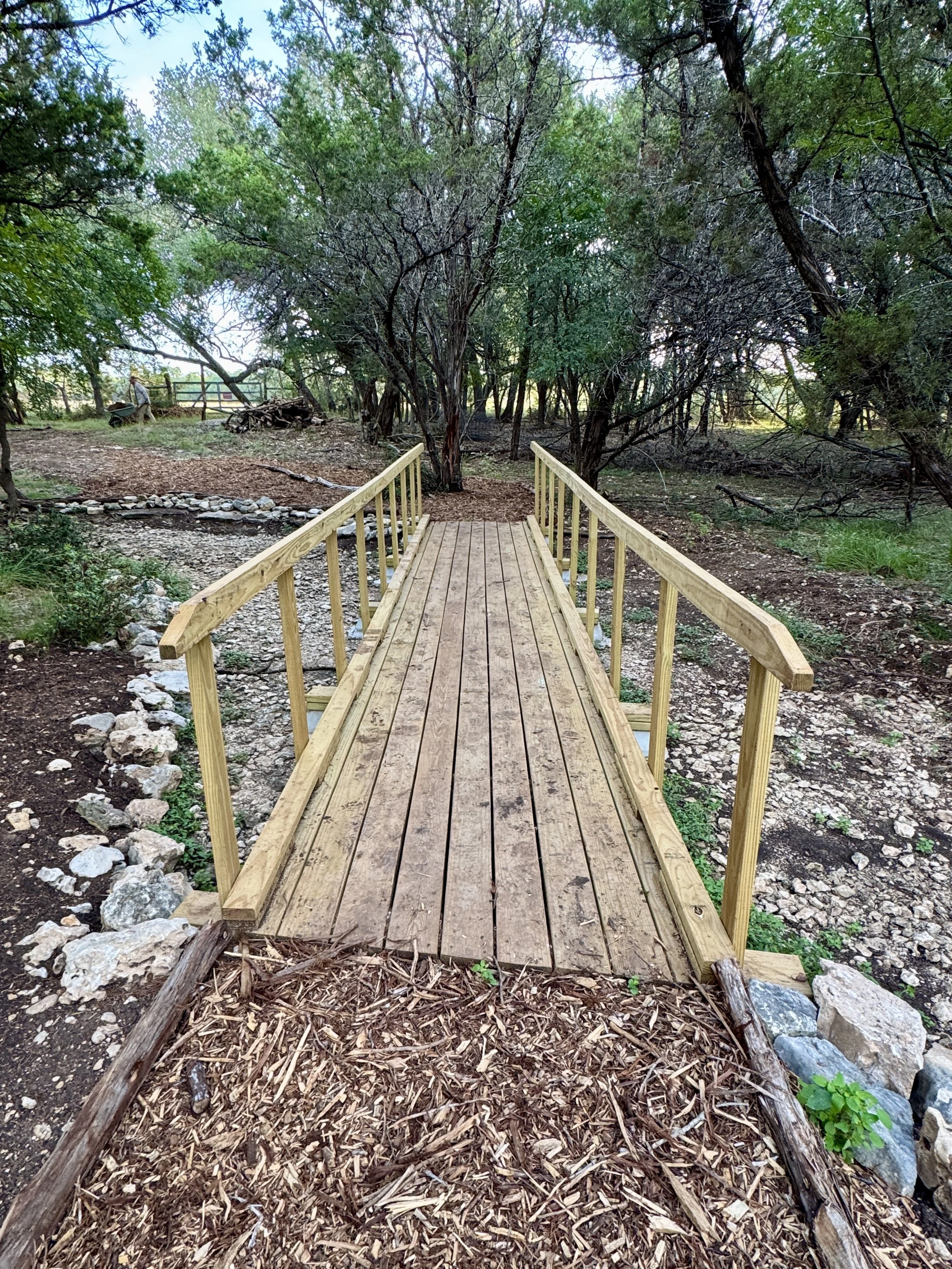 The most recent project involved constructing a bridge across the overflow creek and adding mulch to the trails surrounding the new structure.