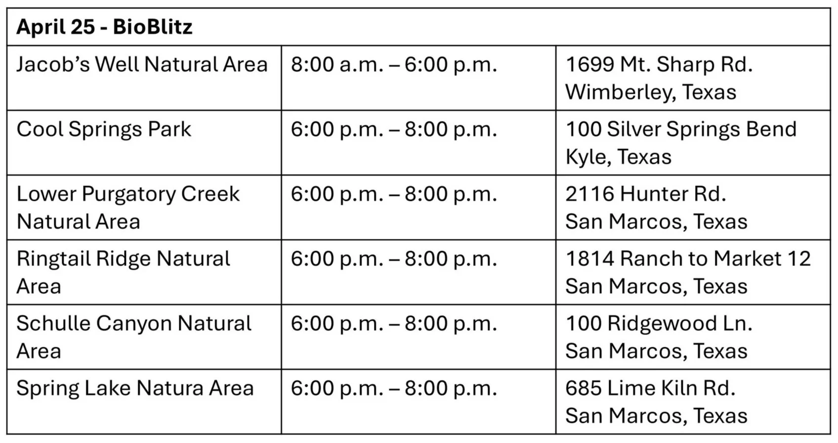 Across Hays County, participants step outside with a simple goal: observe and record the living things around them. It might be a wildflower growing in a field, a beetle crossing a driveway, or a bird calling from somewhere just out of sight. With a quick photo and a few taps, those small moments become part of something much bigger. It is a shared effort to better understand the natural world in which we live.