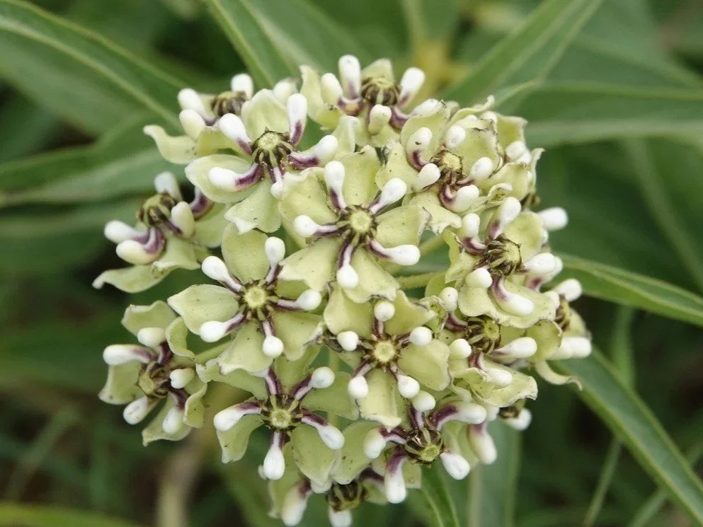 Antelopehorn Milkweed (Asclepias asperula) close-up of the flower. Photo courtesy HCMN Sharon Moore, City Nature Challenge 2025