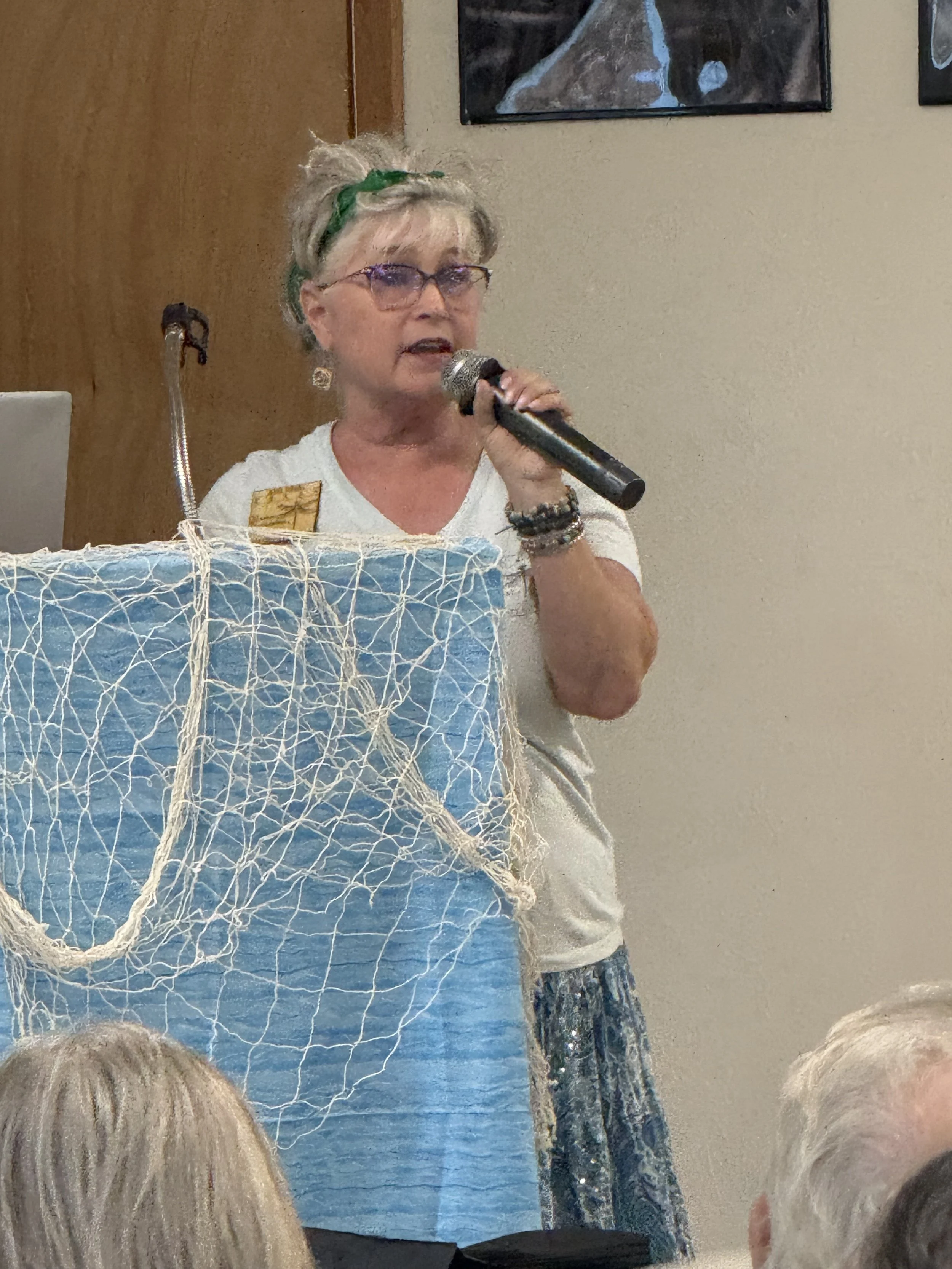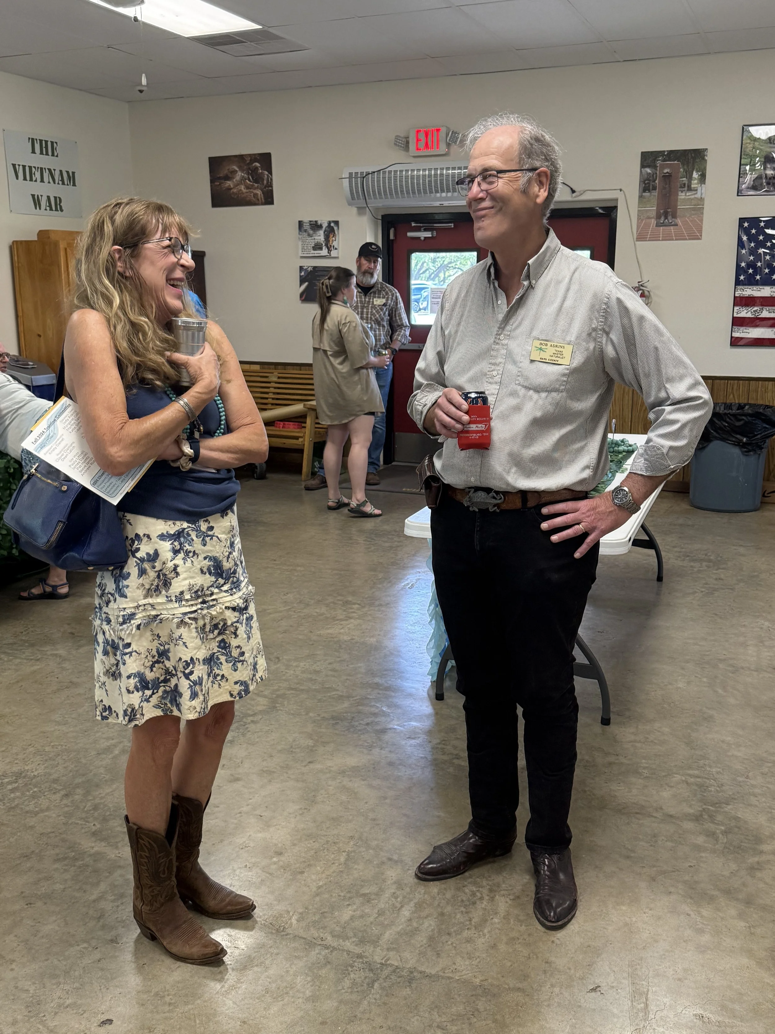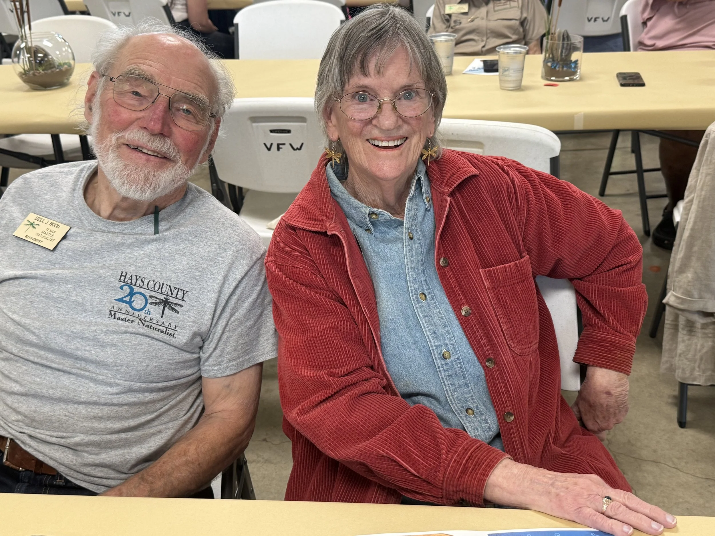 Hays County Master Naturalist Chapter president Bob Adkins welcomed the Spring Reunion crowd. The Chapter traditionally presents honorary awards for several categories of service to the Chapter, including individual Chapter members and Community Partners, those individuals and organizations within the Hays County community who often work alongside our members and who share our vision or support our mission. Martha Sanders, chair of the Awards committee, joined Bob onstage to present this spring's awards.