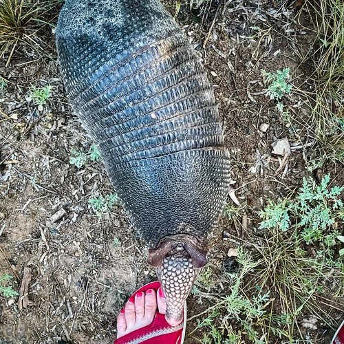 Mary O’Hara’s close encounter with a ‘dillo— “When it headed toward me, I froze in situ. It literally licked my toe! Thought I would faint with delight…feeling so honored!”