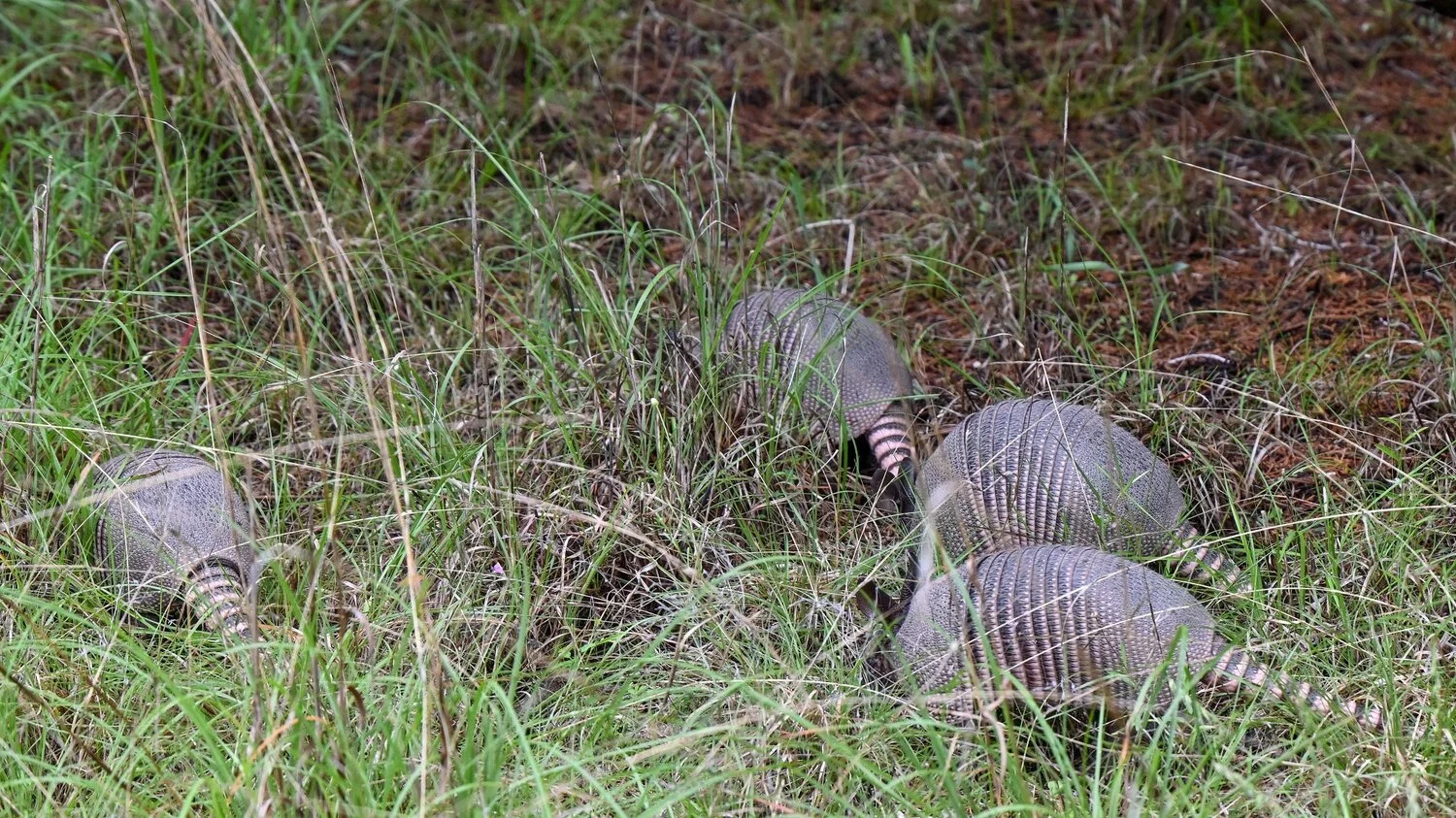 Small streams are no obstacle for the nine-banded armadillo. They can hold their breath for up to 6 minutes and can swim (or float by inflating their intestines) and “walk” along the bottom of rivers.
