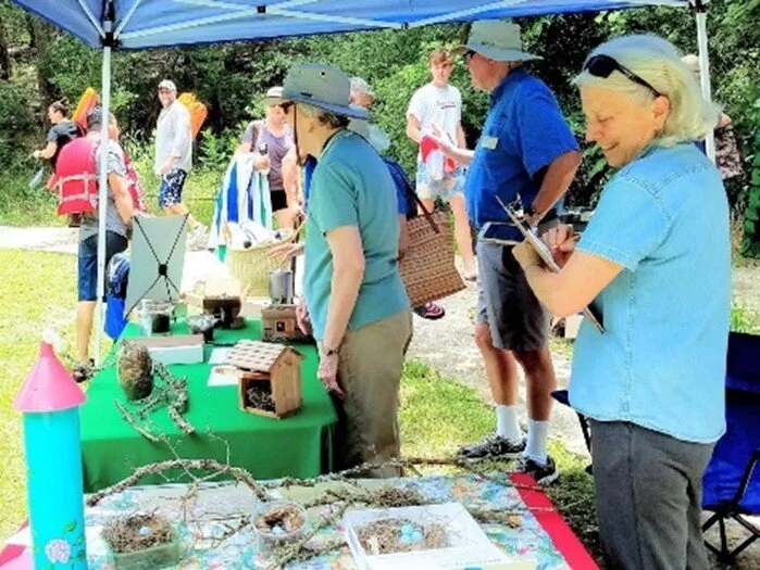 Together with WAN Program Leader Christine Middleton, the Wild About Birds team were Carolyn Bauknight, her husband Wayne Bauknight, Neeta and Roger Allen, Deb Bradshaw, Mimi Cavender, Melanie Webb, and Lin Weber. Carolyn had produced attractive, information-rich, grab-and-go handouts for visitors to enjoy at their leisure. Chris Middleton kept tallies of visitors to the exhibit table. By her count, more than 60 participants—children of all ages and their parents—spent time around the display, chatted with the volunteers, compared the birds at their house with our eight, oooohed over the hummingbird nest, and poked their fingers into the bottom of other nests from cardinal to wren to titmouse. Carolyn recalls, “One parent was particularly interested in going through the grab-and-go bird information and activities with his young son, and another parent, from out of state, thought we were doing a good job encouraging parents and kids to enjoy birds and nature.” We all remember the very little boy who crowed to us that he’d already seen “two Golden-cheeked Wobblers!” None of us under the tent had ever seen any.