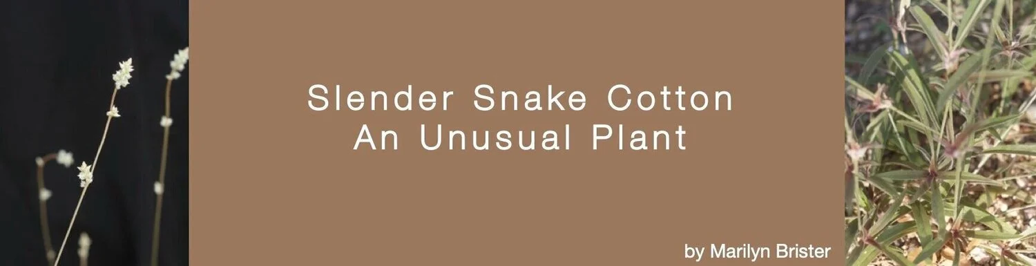 In consulting sources on the internet and books on wildflowers, I found that this plant is native to Texas and many other states. Its seeds are airborne, and the plant is often seen in sandy and rocky soil and along railroad tracks. Its scientific name is Froelichia gracilis. Its family name is Amaranthaceae. There are other Snake Cotton plants in this family that vary a little from Slender Snake Cotton. Geyata Ajilvsgi shows Froelichia floridana and Froelichia arizonica, both similar plants in her book on Texas wildflowers. Campbell and Loughmiller show Slender Snake Cotton, and Marshall Enquist also shows Slender Snake Cotton. It is not listed in Native Host Plants for Texas Butterflies by Weber, Weber, and Wauer, though I have seen an occasional small grasshopper and a praying mantis on the blooms. One source stated that deer like it, but it makes poor food for cattle. I'd like the deer to come eat a path through my bed of Slender Snake Cotton!