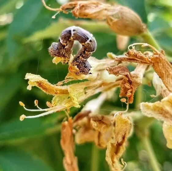 They were icky in our hair, left a lot of gritty frass, and did a lot of damage, most of it not permanent. But you have to admit these cankerworm larvae are beautiful to look at up close—almost psychedelic. And by May, most of them will have pupated and emerged as small brown and grey moths fluttering now around your porch light. They mate, lay near-invisible eggs, and die within a week. They had their time in the sun.