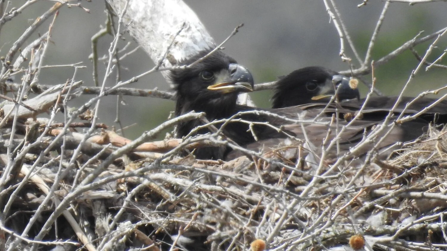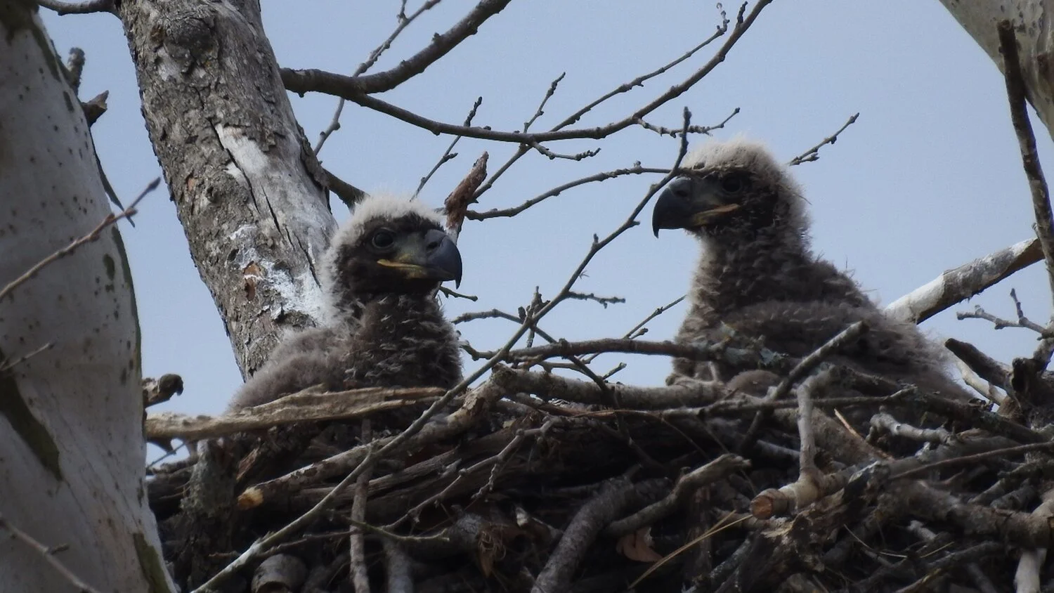 And on April 1, the next step for the eaglets: venturing out on a nearby branch and getting the hang of their wings.