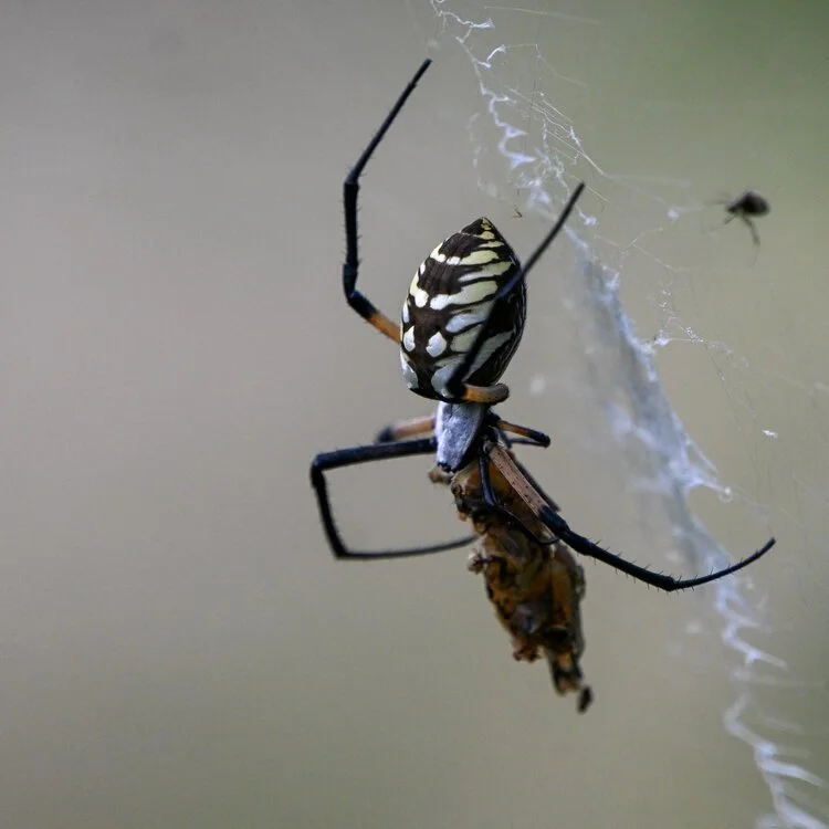 Our captured specimen put on a nice display of its climbing ability, striding straight up its plastic container wall and allowing visitors to glimpse the bright yellow underside of its legs—a cool distraction coloration it can use to escape predators.