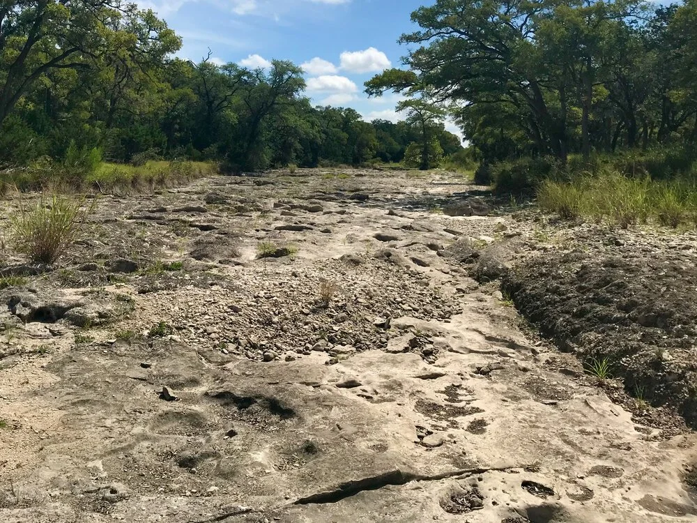 You can see the top of the Cow Creek limestone in the riverbed. The river is dry in this stretch because the water has flowed into the bedrock via karst features, such as sinkholes and fractures.