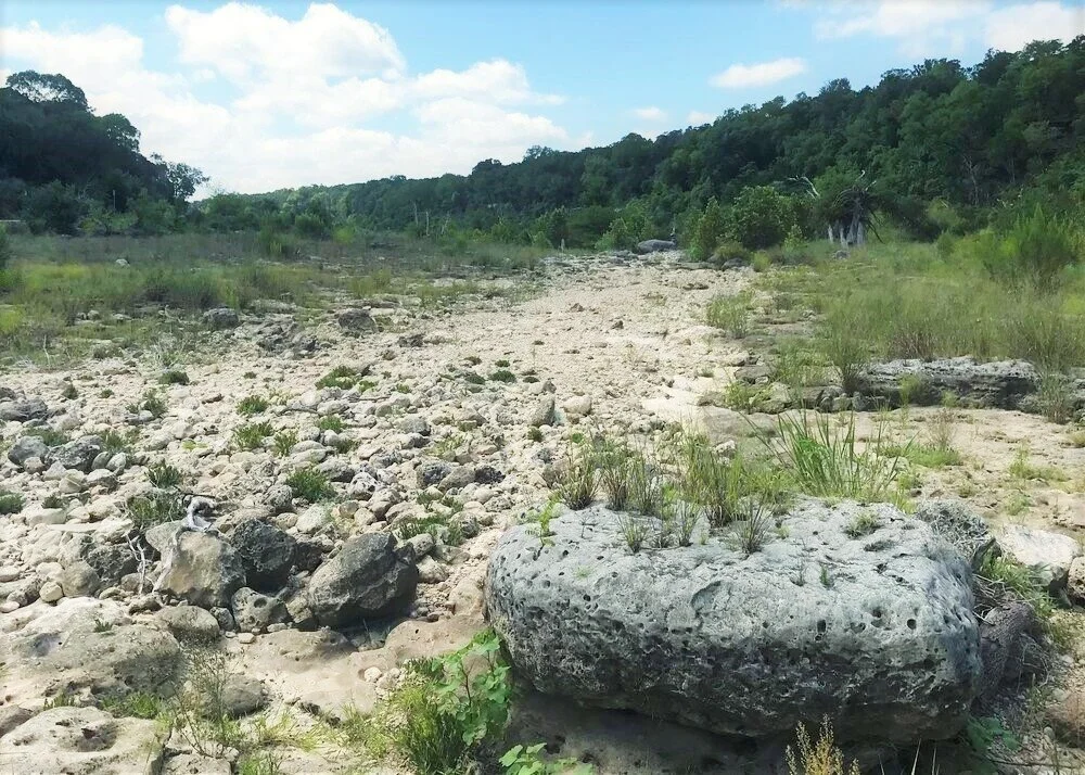 So where does the Blanco water go in these dry stretches? It easily flows underground, draining into the numerous sinkholes, faults, and fractures in the limestone. In this section, the Cow Creek limestone appears at the surface and can be observed in the bottom right photo below. The water enters the Cow Creek limestone, a significant formation within the Middle Trinity Aquifer. This same aquifer is the source for many of the iconic springs in the Wimberley area and also for Wimberley's drinking water.
