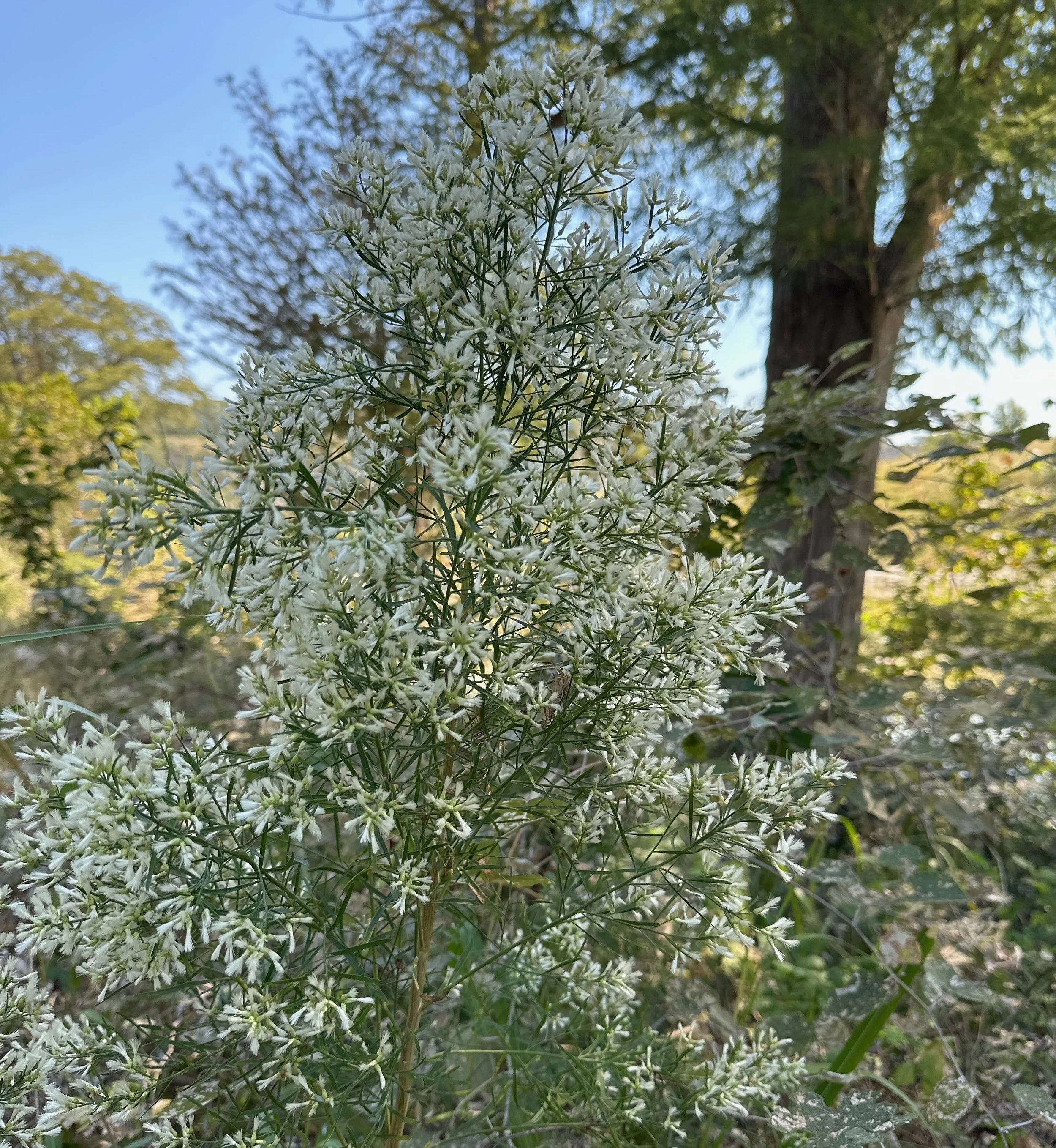 A native with a 90+ year reputation for taking over is Roosevelt Weed (Baccharis neglecta). As its scientific name implies, Baccharis loves neglected areas—abandoned agricultural fields, degraded roadsides, and other plots of ground whose ecosystems we have somehow altered. The common names Roosevelt Weed, Poverty Weed, and New Deal Weed come from the 1930s Dust Bowl years, when Baccharis was intentionally planted in abandoned agricultural fields to stem the soil’s blowing across the United States.