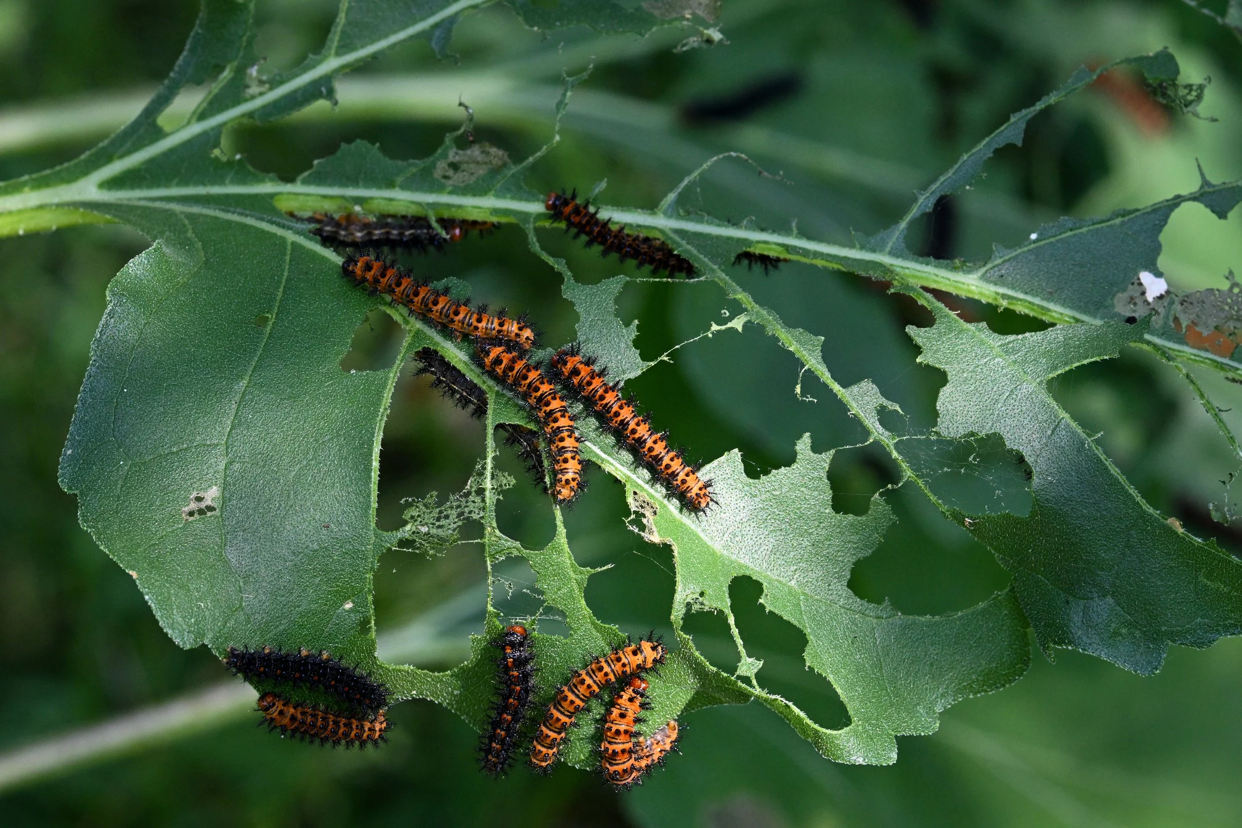 Bordered Patch Butterfly caterpillars on common sunflower Photo courtesy Betsy Cross