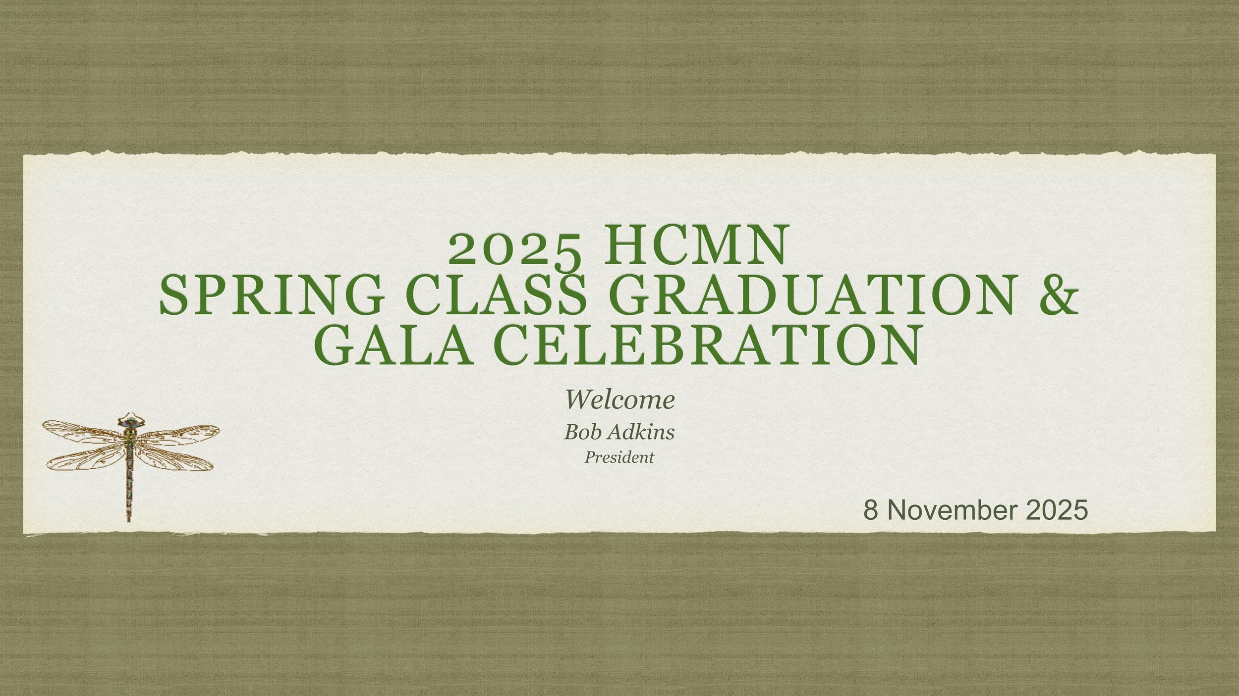 On Saturday, November 8, members of the Hays County Chapter of Texas Master Naturalist™ celebrated the 2025 Spring Graduating Class of Fireflies. The Gala event included a social hour with dinner, a presentation by President Bob Adkins, including Chapter highlights and yearly metrics, followed by introduction of the graduating class by Training Director Mary O’Hara. Then came the individual members’ milestone and tenure awards, Community Partner awards, and Chapter recognition awards.
